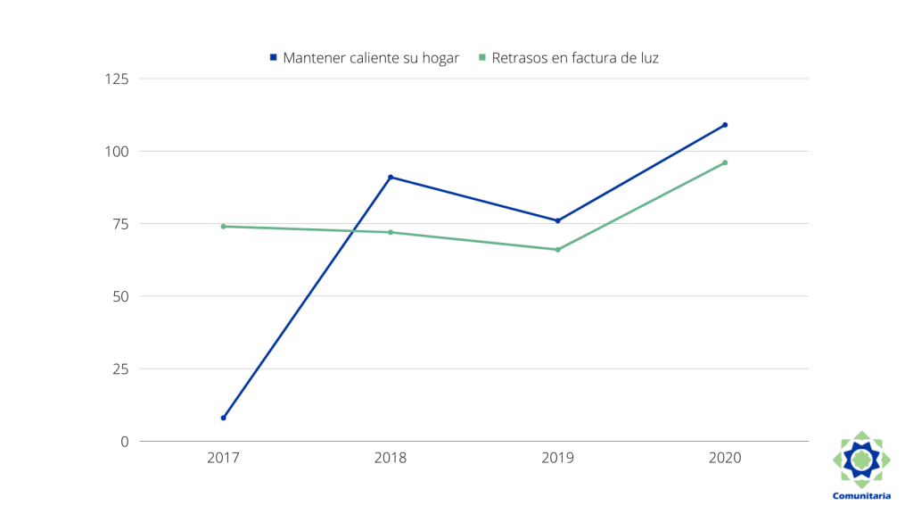 En la siguiente gráfica se puede ver la evolución que ha tenido la pobreza energética desde el año 2017 y el aumento significativo que ha tenido en 2020.